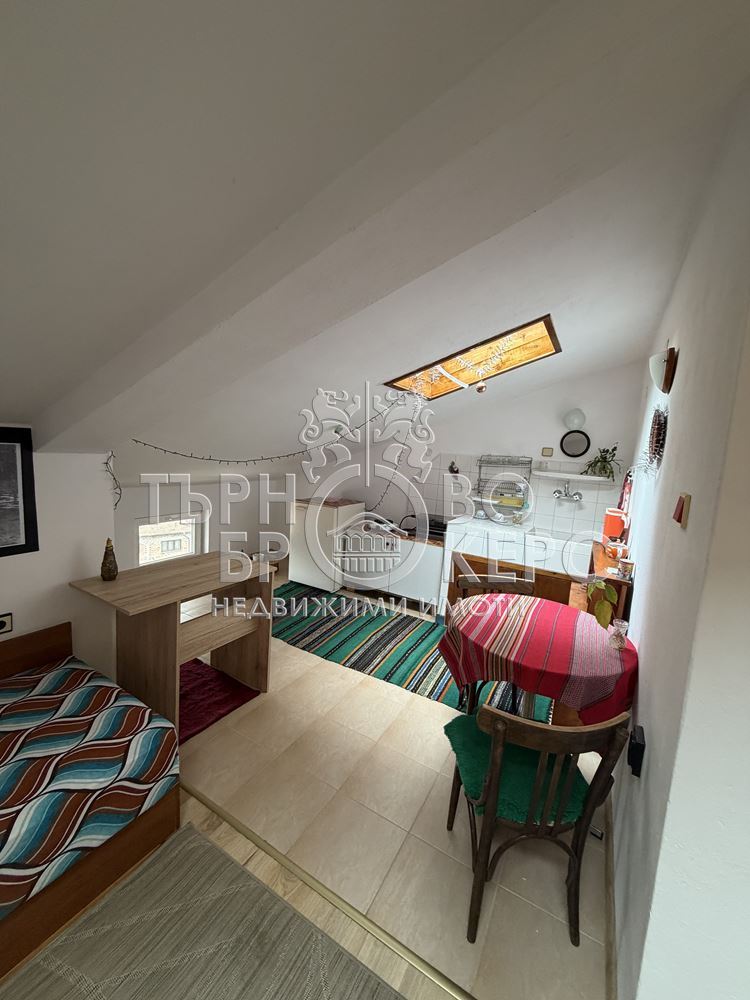 Екипът на Търново Брокерс Ви представя таванска боксониера до Ректората. Жилището се състои от просторна стая, баня с тоалетна и антре. Имотът е обзаведен и оборудван със следните ел.уреди:котлон, хладилник и конвекторна печка.