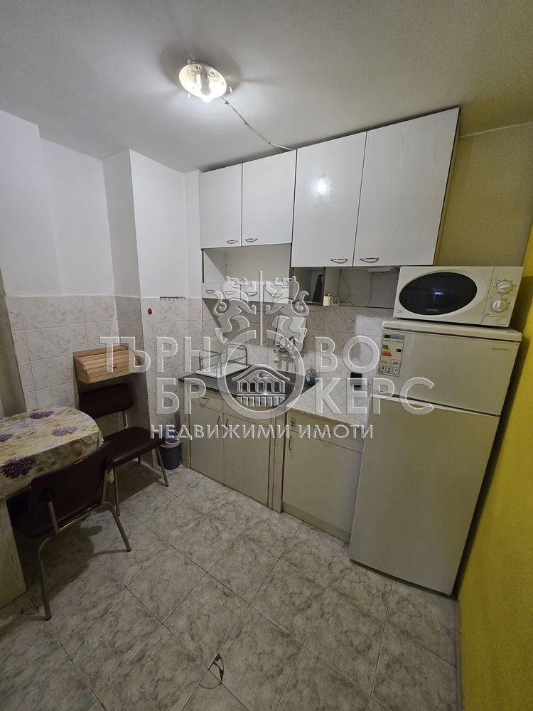 Екипът на Търново Брокерс Ви представя апартамент, находящ се на бул.България. Жилището се стстои от хол, кухненски бокс, спалня, баня и тоалетна, остъклена тераса и коридор. Имотът е изцяло обзаведен и е оборудван със следните ел.уреди: готварска печка, пералня, хладилник, микровълнова фурна, климатик в хола и конвектор за отопление в спалнята.