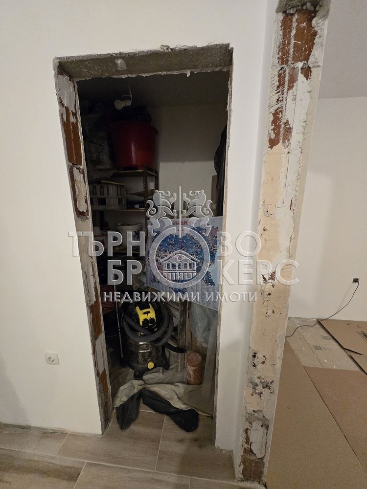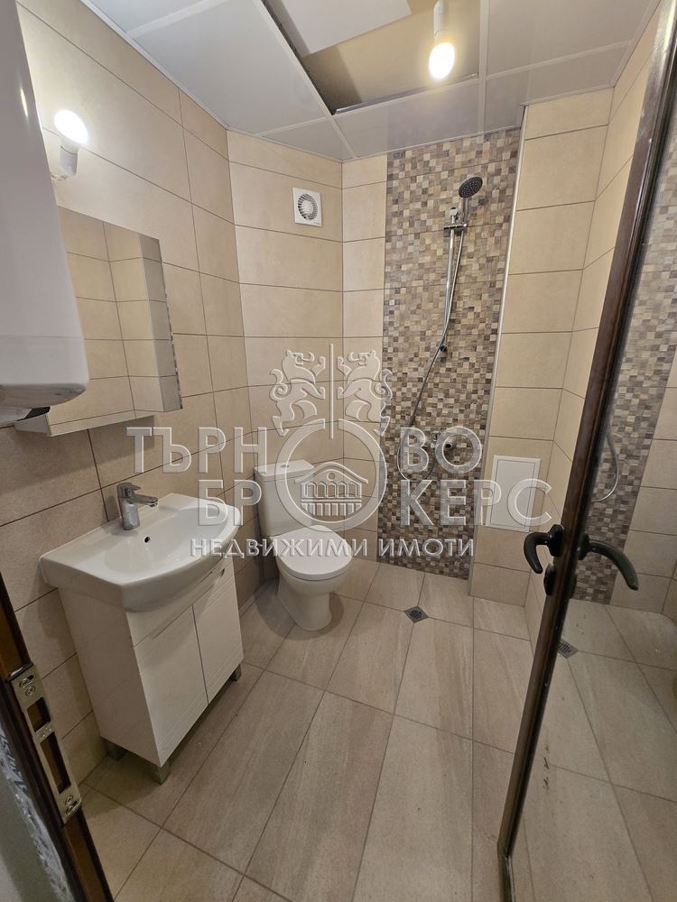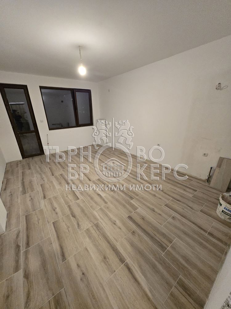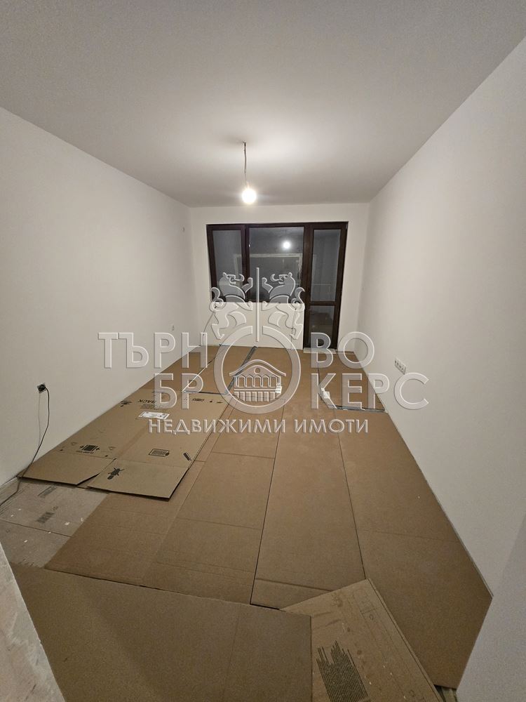 Екипът на Търново Брокерс Ви представя двустаен апартамент ново строителство, находящ се в началото на кв.Бузлуджа. Жилището се състои от трапезария с кухненски бокс, спалня, баня и тоалетна, тераса, свързваща двете стаи и килер. Имотът е с площ от 52.4кв.м., а към него има и мазе с площ от 4.95кв.м. Етажът е междинен, а изложението – изток. Санитарният възел е готов, стените са шпакловани и боядисани, а в коридора и всекидневната има поставени и подови настилки.