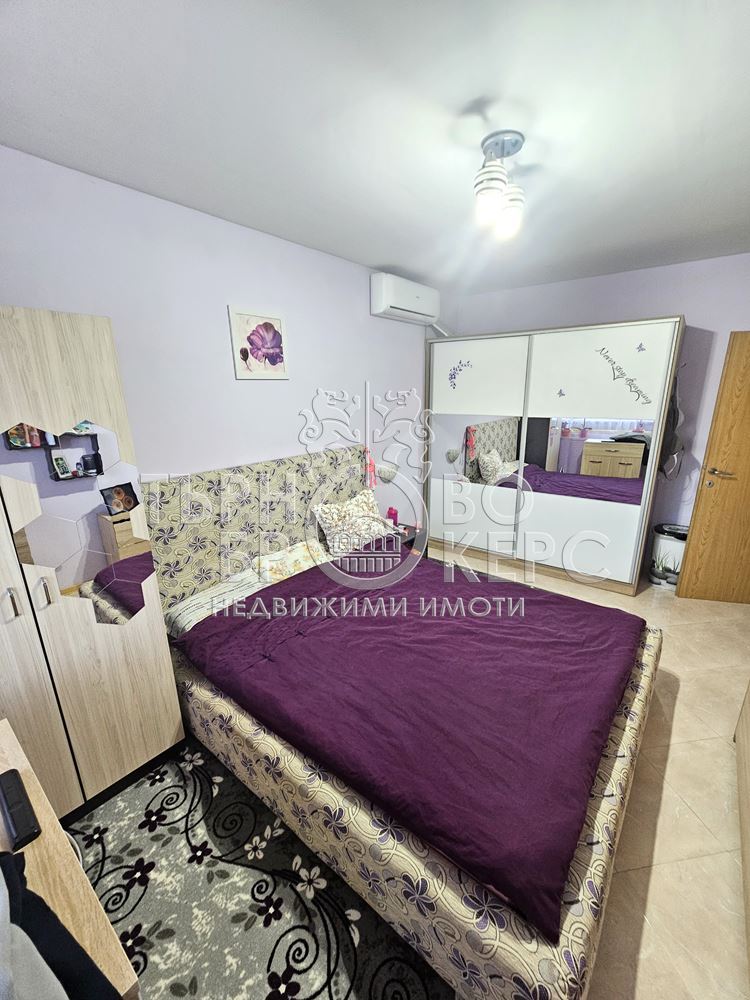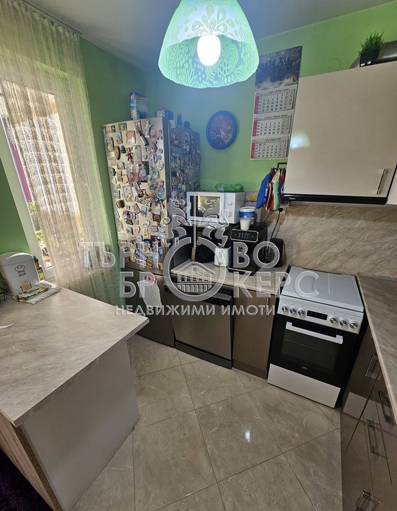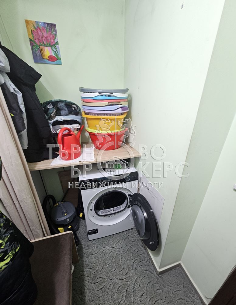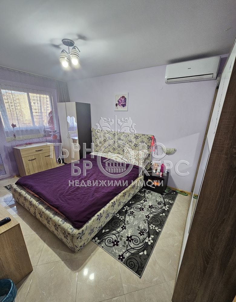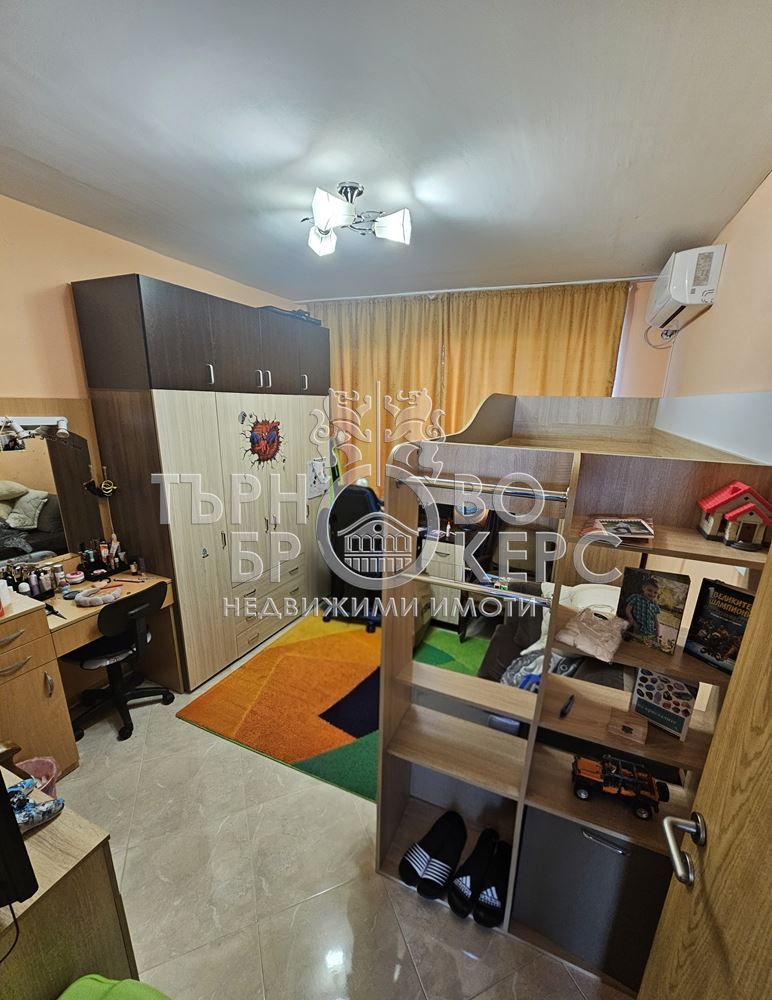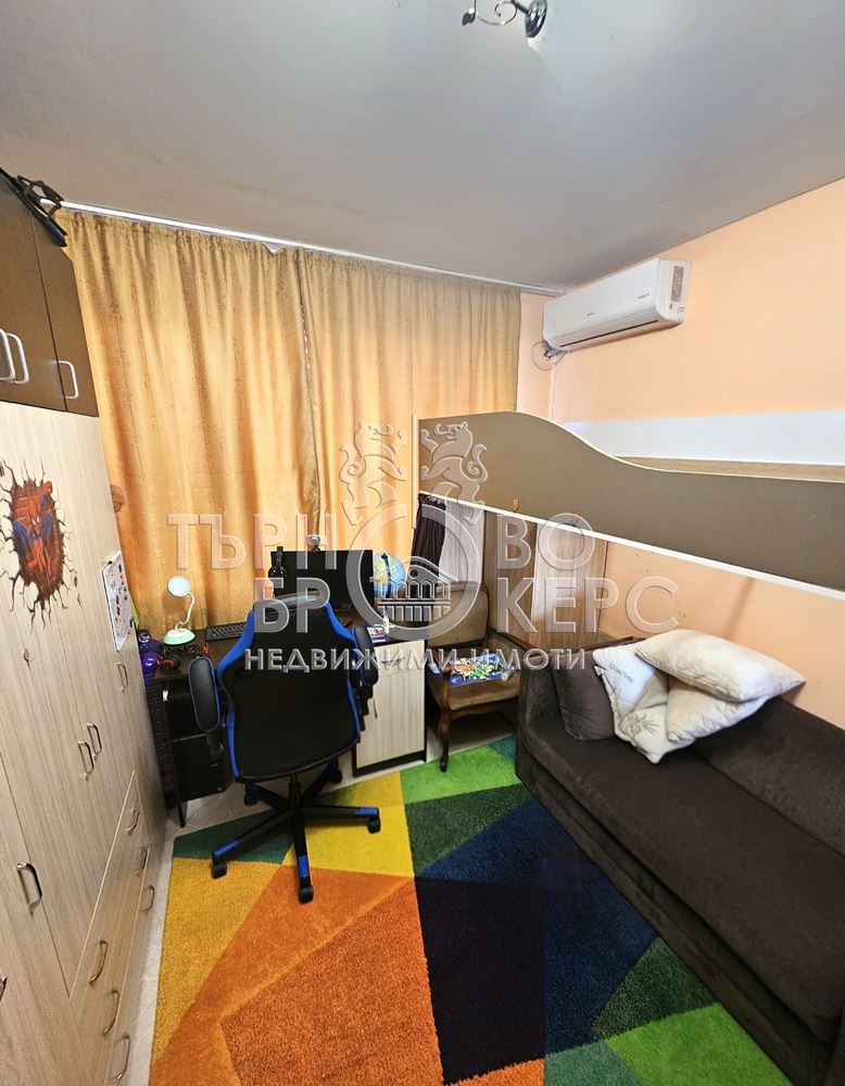 Функционален тристаен апартамент с панорамна гледка в кв. Кольо Фичето, Велико ТърновоПредлагаме Ви функционален и напълно обзаведен тристаен апартамент, разположен в един от най-предпочитаните квартали на Велико Търново – кв. Кольо Фичето.Имотът е с обща площ от 90 кв.м., от които 78 кв.м. чиста жилищна площ, 2 кв.м. избено помещение и 10 кв.м. общи части. Намира се на седми(последен) етаж в тухлена сграда ново строителство с АКТ 16 от 2011 г., с поддържани общи части и отлична локация.Разпределение:*Просторна всекидневна с кухненски бокс*Две самостоятелни спални*Коридор*Баня с тоалетна*Две остъклени терасиАпартаментът е с юг-север изложение, което осигурява естествена светлина през целия ден и добра вентилация. От имота се разкрива приятна панорамна гледка.Жилището се продава напълно обзаведено и оборудвано, което го прави готово за нанасяне без допълнителни инвестиции.Имотът е отличен избор за семейство, търсещо комфорт, функционалност и спокойна жилищна среда в развит район с всички необходими удобства в близост – магазини, училища, детски градини, спирки и паркови пространства.